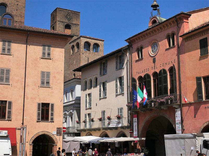 Piazza Risorgimento, often referred to as Piazza del Duomo, is the central hub of Alba and hosts Saturday’s market, primarily offering clothing and household goods.